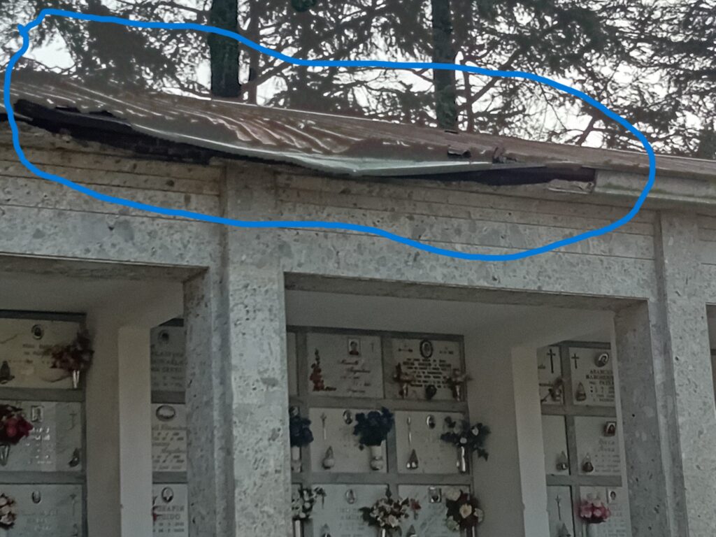 Purtroppo, dopo l’ultimo nubifragio che si é abbattuto sulla nostra città, la situazione si é ulteriormente aggravata; l’incuria e la mancata competenza e l’indolenza (l’amministrazione non si é nemmeno adoperata a rilevare i danni, ne tantomeno ad avvisare i famigliari dei defunti delle tombe danneggiate) hanno trasformato un luogo di culto dove giacciono i ricordi dei più cari, in un luogo fatiscente ed estremamente insicuro.
