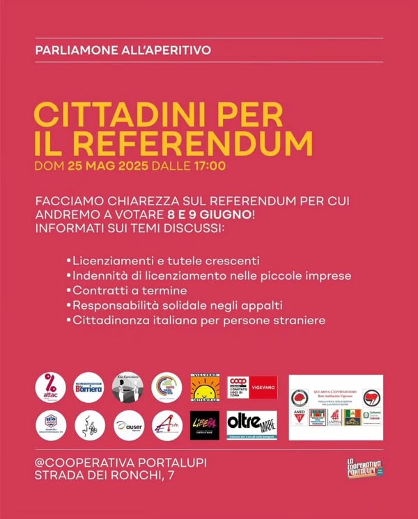 I nostri tesserati che sono soci della cooperativa parteciperanno all’evento consapevoli dell’importanza di parlare dei referendum e di fare informazione sui diritti del lavoro e sul diritto alla cittadinanza che saranno al voto.