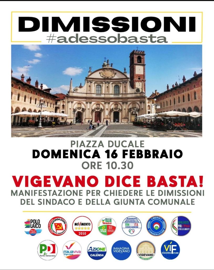 DIMISSIONI. Piazza Ducale, Domenica 16 Febbraio, ore 10:30. Vigevano dice basta! Manifestazione per chiedere le dimissioni del Sindaco e della Giunta comunale