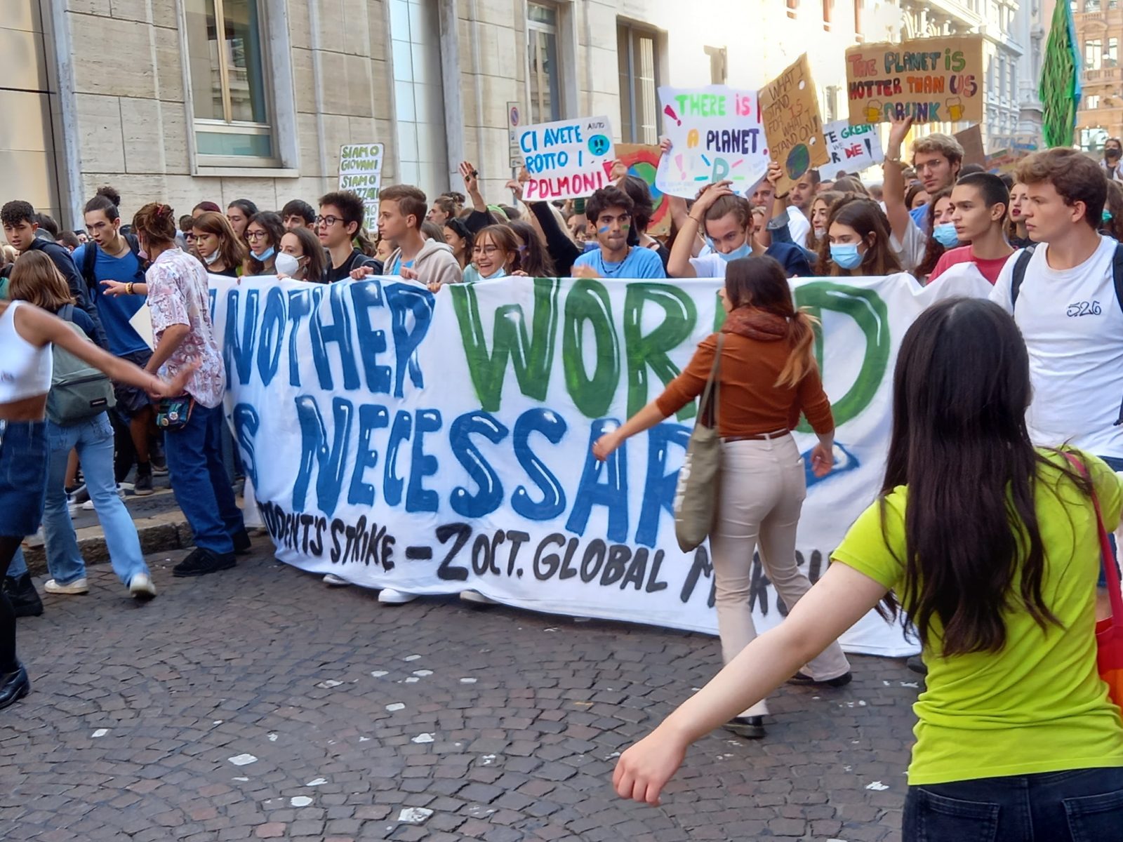 Uno striscione colorato e felice di occhi lungo due chilometri , con tanti ragazzi che corrono e ballano, alzano cartelli e inneggiano slogan ritmati.il futuro è nostro e non lo deleghiamo a nessuno, non staremo a guardare passivamente il bla bla bla della politica.