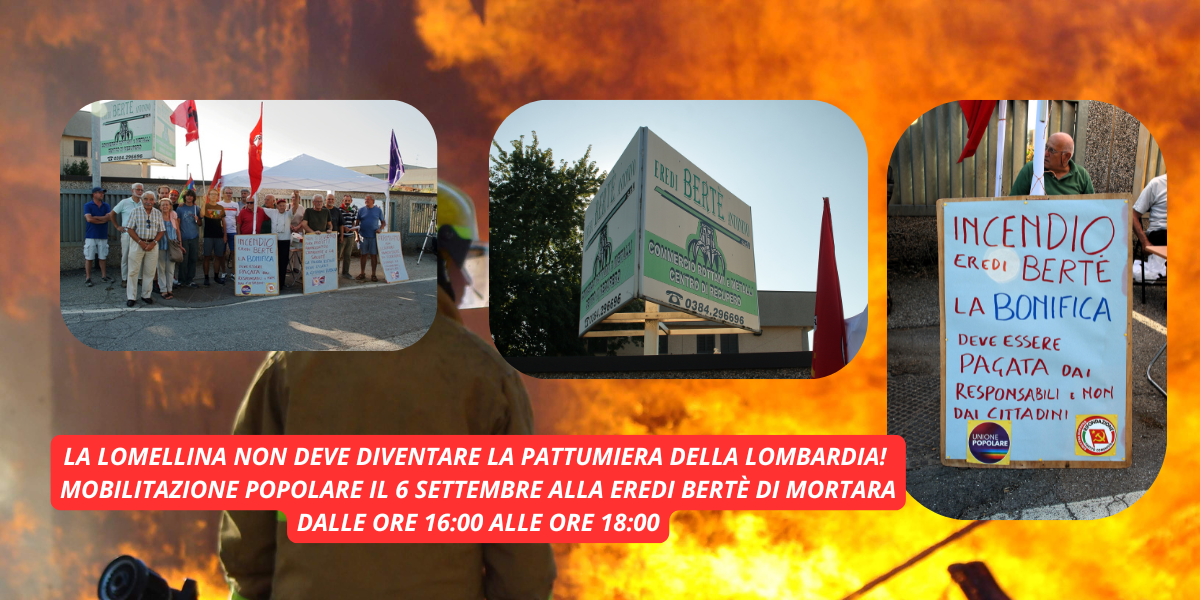 Rifondazione Comunista di Mortara, lancia una mobilitazione popolare per dire NO agli ampliamenti degli impianti inquinanti di Mortara e Parona e per pretendere – ancora una volta – verità e giustizia sull’incendio Bertè, a 8 anni dal disastro.