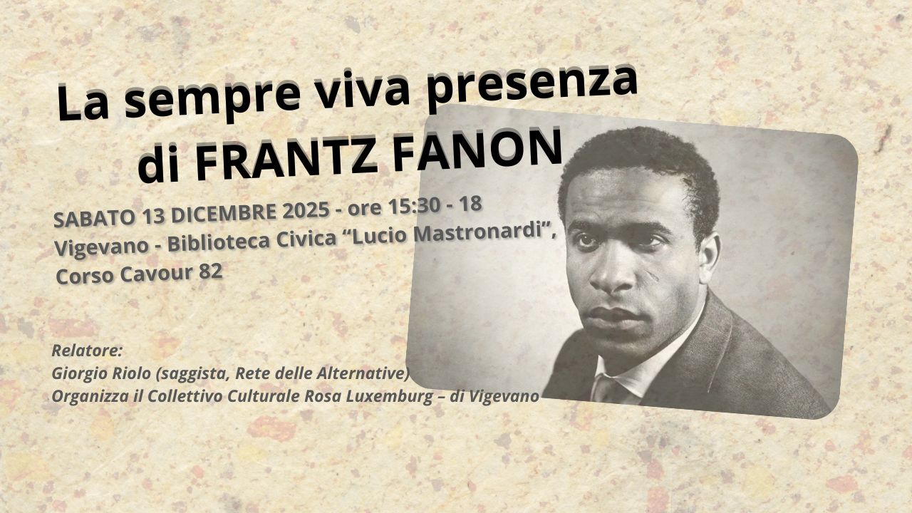 14 Dicembre 2025 / In Collettivo Rosa Luxemburg, Cultura, Mondo, News, Politica, Uncategorized / Tags: #collettivoculturalerosaluxemburg, #colonialismo, #frantzfanon, #giorgioriolo, #imperialismo / By Rino / Commenti disabilitati su La sempre viva presenza di Frantz Fanon