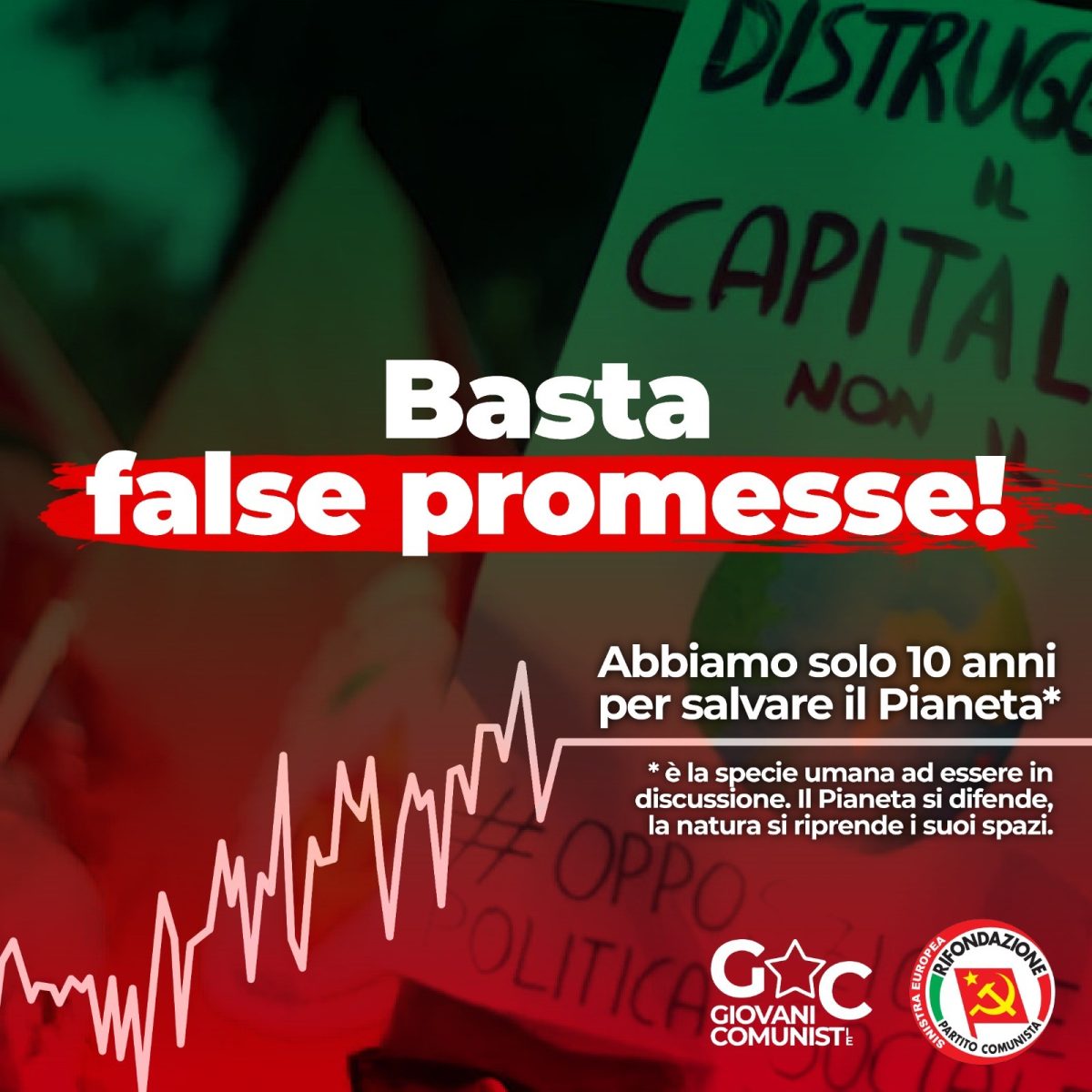 Servono misure immediate e concrete in linea con la scienza, con il principio di giustizia climatica, con i diritti di tutte e tutti e non asservite agli interessi economici di governi ed imprese, responsabili della crisi attuale e che si nascondono dietro false promesse.