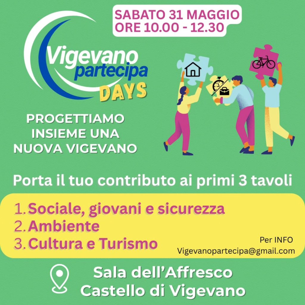 Partecipiamo e invitiamo a partecipare ai tavoli di discussione libera sui temi che necessitano di grandi scelte e cambiamenti: per cominciare a parlarne, per raccogliere idee ed esperienze, dati, bisogni e sogni, ci troviamo sabato 31 maggio alle 10 presso la Sala dell’Affresco del Castello Sforzesco di Vigevano per la prima di una serie di incontri davvero aperte a tutti.