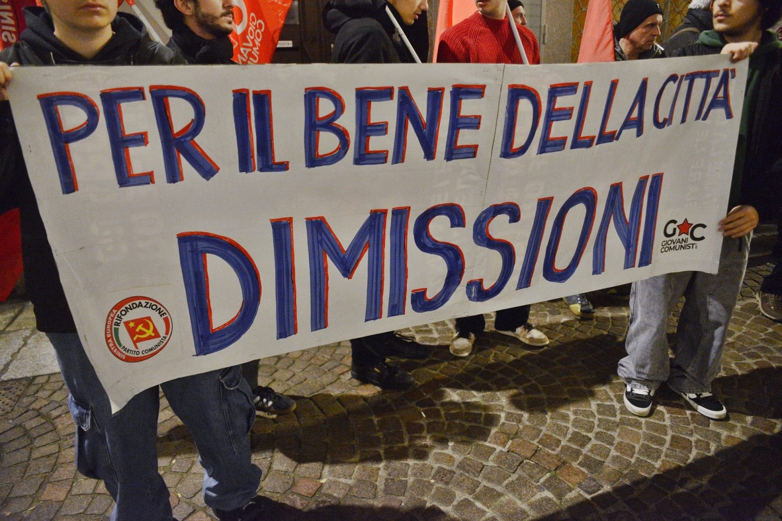 Un riuscitissimo presidio di Rifondazione Comunista di Vigevano davanti al Comune, la sera del 17 dicembre 2024, per chiedere le dimissioni della Giunta Ceffa.