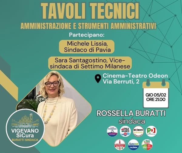 Dopo il successo del primo incontro, vi invitiamo giovedì 5 febbraio, alle ore 21, presso la saletta del Cinema Teatro Odeon Vigevano in via Berruti 2, al secondo “Tavolo Tecnico” a tema: “l’amministrazione e i suoi strumenti”.