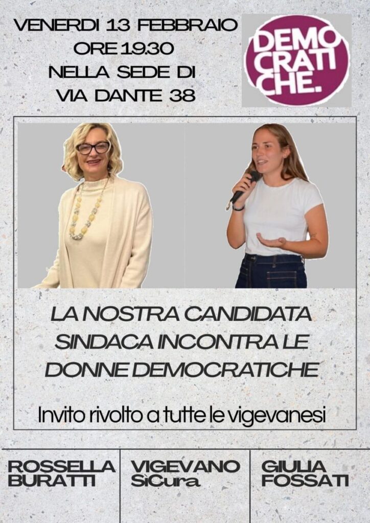 Quando? Venerdì 13 febbraio alle 19:30. Dove? Sede della Coalizione per Rossella Buratti Sindaca in Via Dante 38 a Vigevano.